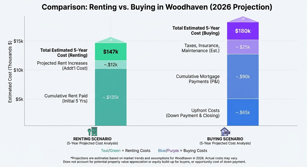 Comparison: Renting vs. Buying in Woodhaven (2026 Projection)